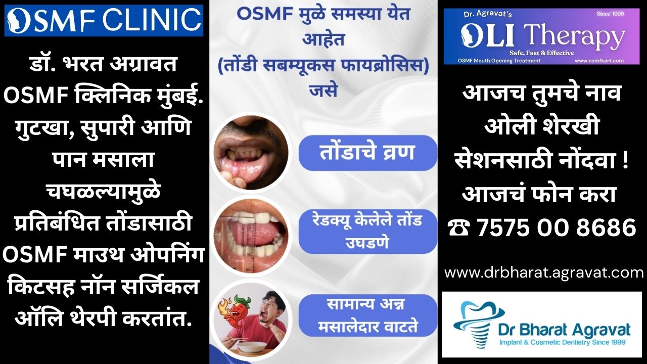 Dr Bharat Agravat OSMF Clinic Mumbai performs Non Surgical OLI Therapy with OSMF Mouth Opening Kit for open restricted mouth due to chewing Gutkha, Supari and Pan Masala. OLItherapy Video Marathi