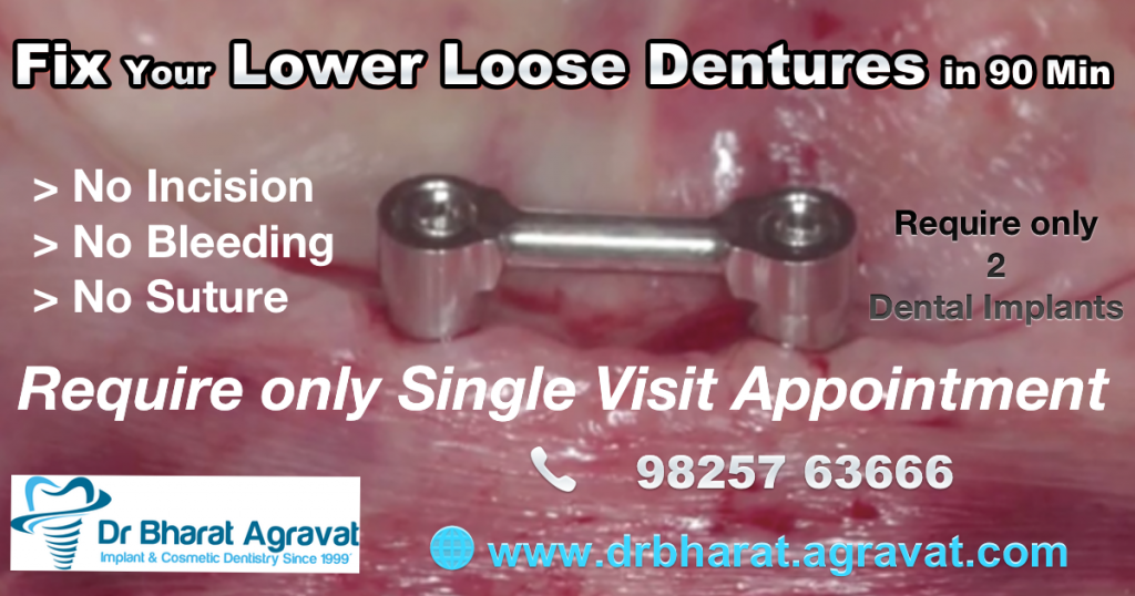 Fix ill fitting loose lower dentures in 90 Minutes Best Implants Dentist Ahmedabad Gujarat India